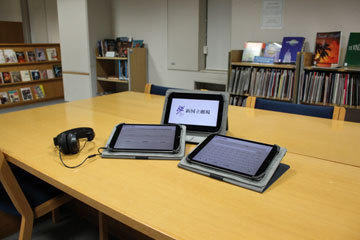 新たに導入したタブレット端末では、閲覧室内のお好きな場所で、新国立劇場のこれまでの公演をご覧いただけます。