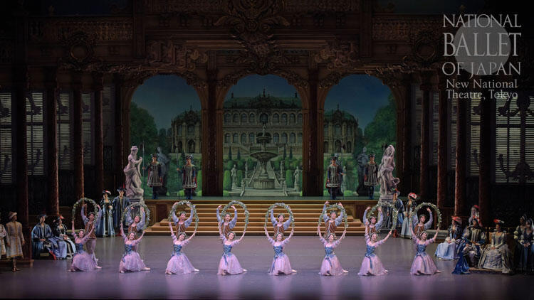栄華を誇るフロレスタン王の宮廷は、一人娘オーロラ姫の誕生に湧き上がり、幸せに包まれている。リラの精はじめ妖精たちも招かれた晴れやかな祝祭のさなか、突然雷鳴がとどろき、激怒した悪の精カラボスが登場。手違いで、ただ一人招かれなかったことを恨んだカラボスは、「姫は編み針を刺して死ぬだろう」と、不吉な予言をする。リラの精は、姫を守ることを約束、一同は安堵する。