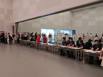 昨日、新国立劇場のリハーサル室にて出演者全員と指揮者やスタッフ等が揃って、衣裳付き通し稽古を行いました。その様子を写真とともにご紹介します。