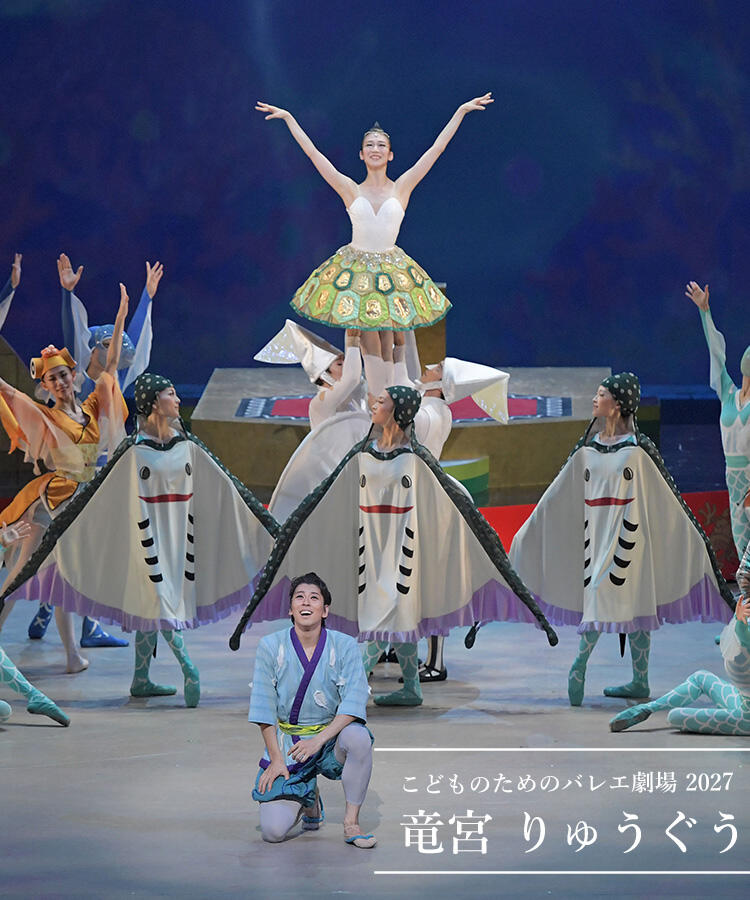 ある日、浜辺で子ども達が亀を面白がっていじめるのを見た太郎は、亀を助け、海に逃してやりました。その晩、太郎は、風を切り、光を放ち、大空を飛んでいる不思議な夢を見ます。次の朝、波の中から昨日助けた亀が現われて言います「お礼に、竜宮城にご招待をさせてください。」亀の背中に乗って、いざ海の旅へ出ると、波が二人を運び、魚たちと光がきらめいて、水と空の二重の風景が太郎を包んでいます。