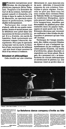 2012年に制作された「Chroma」は、このマルセイユフェスティバルをヨーロッパ初演とし、来たる土・日の両日にラ・クリエで披露される。