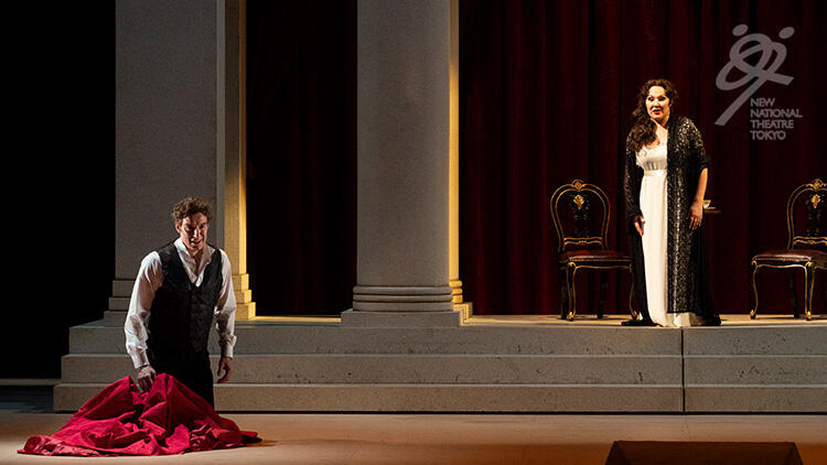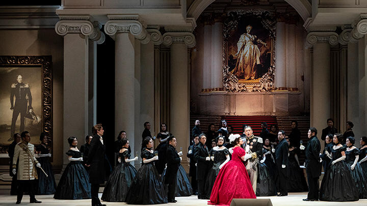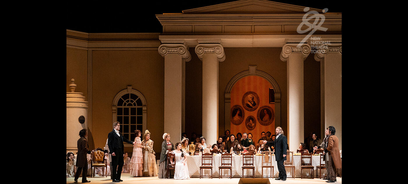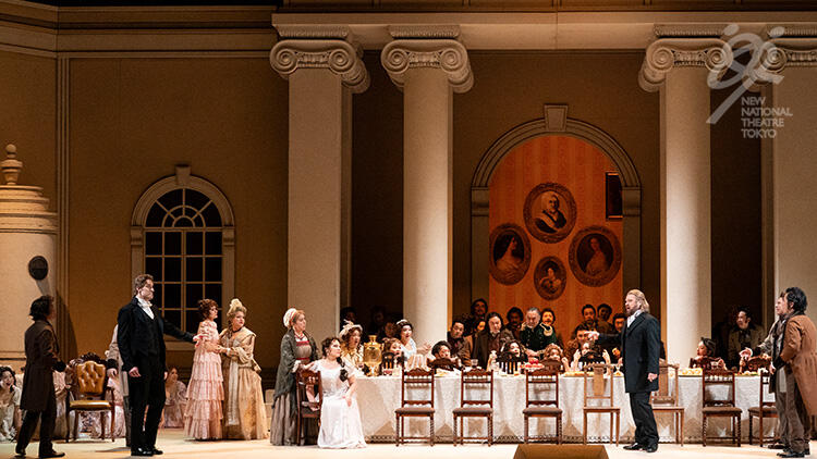【第3幕】数年後、サンクトペテルブルクのグレーミン公爵邸の舞踏会。社交界から離れ放浪の旅を続けていたオネーギンが久しぶりに現れ、グレーミン公爵夫人となったタチヤーナに再会し、その変貌ぶりに驚く。グレーミン公爵がオネーギンに妻を紹介し、いかに妻を愛しているか語る。タチヤーナの優雅な姿に今度はオネーギンの心が燃え上がる。オネーギンはタチヤーナのもとを訪れ、憐れみを乞う。オネーギンの激情にタチヤーナも心動かされるものの、オネーギンの自尊心に訴え、公爵と共に生きる運命に従う、と言い残し去っていく。