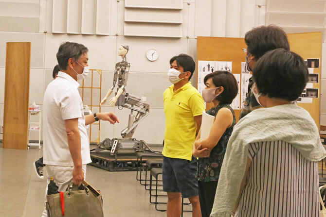 稽古初日には、大野和士オペラ芸術監督、台本を執筆した島田雅彦さん、作曲を手掛けた渋谷慶一郎さん、総合舞台美術として装置・衣裳デザインと映像の監督を行っている針生康さんからあいさつがありました。