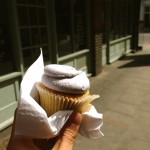まだ午前の早い時間ということもあり、人がまばらでゆったりとした時間の流れ。中心街とは違い道も広く、居心地が良い。倉庫のような場所に、所狭しに並ぶ店、衣類や革小物、雑貨などアーティスチックなモノが多数。お腹が空いたなぁと思っていると、目の前には、パンやカップケーキのお店。か、かわいい。男の感性でもそう感じてしまう。自分も列に入り、カップケーキをお一つ購入。(食べかけの写真で申し訳ない)spacer