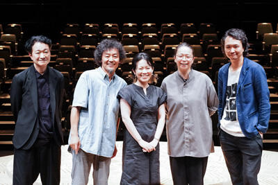 今回は、公演中の新国立劇場 小劇場舞台上での開催ということになりました。早速ご登壇の皆様をお呼びしたいと思います。世田谷パブリックシアター(以下、パブリックシアター)の白井晃さん、彩の国さいたま芸術劇場(以下、さい芸)の近藤良平さん、KAAT神奈川芸術劇場(以下、KAAT)の長塚圭史さん、今日の会場である新国立劇場(以下、新国立)演劇部門芸術監督の小川絵梨子さん。そして、本日はゲストに宮崎県立芸術劇場の演劇ディレクターである立山ひろみさんをお招きしました。