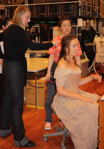 ![]() 左より:ソーニャ・アルバレス(衣裳助手)、小森谷(床山担当)、v・d・シュタイネン(マリー役) | ![]() |
