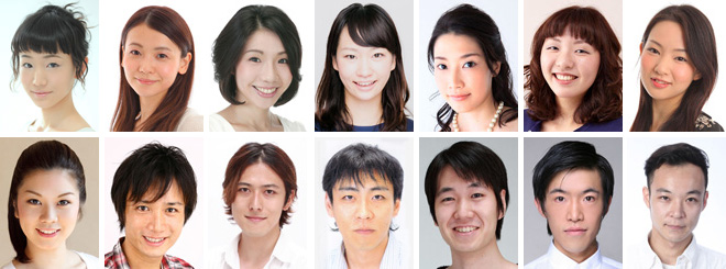 <演劇研修所第6期生> (上段左より)池田朋子、沖田 愛、落合千恵、杉山みどり、西井裕美、南 名弥、森川由樹 (下段左より)横山友香、木村圭吾、田部圭介、玉田裕太、野口雄作、森下庸之、頼田昂治 |