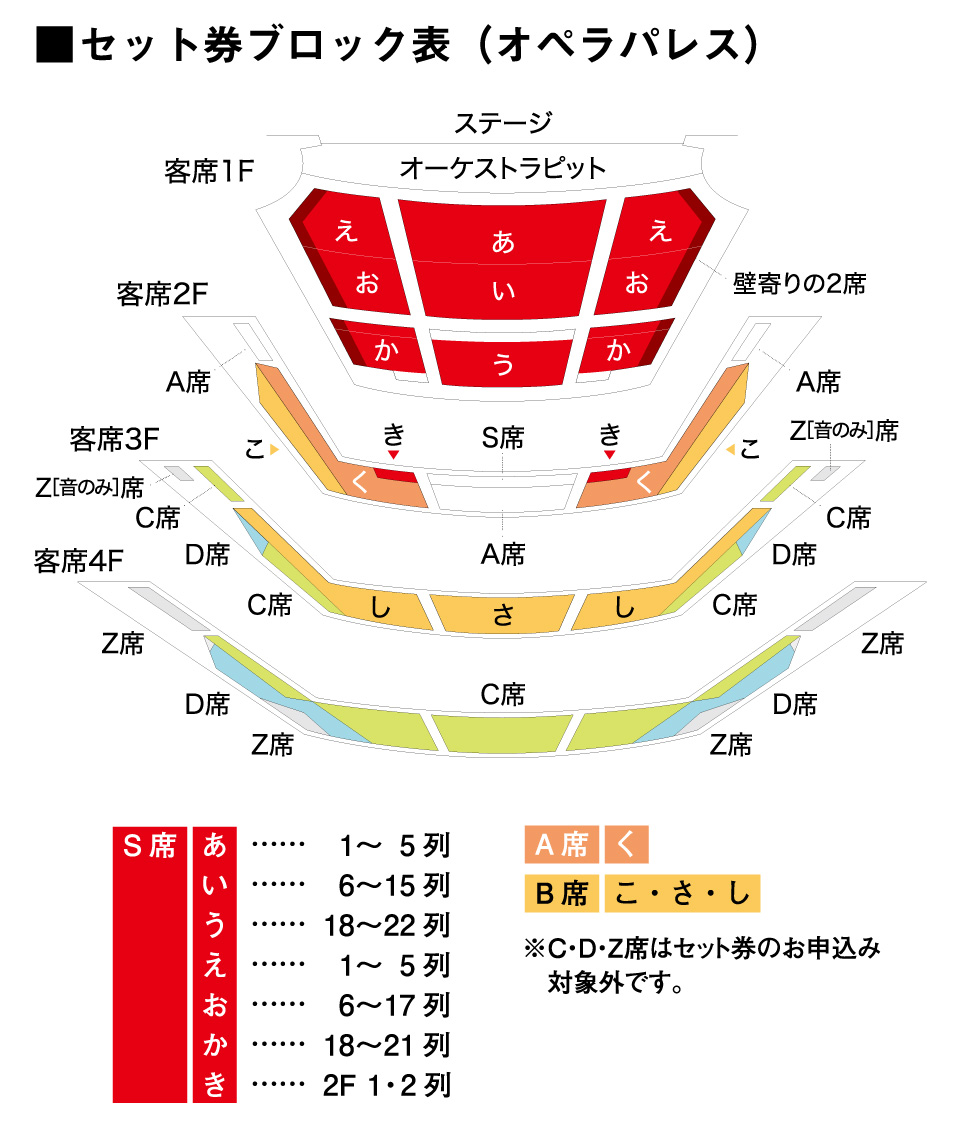一部のブロックにご希望が集中し、第1希望でお取りできない公演がある場合、当該公演のみ第2希望以降のブロックでご用意する場合がございます。(同一席種内に限ります)