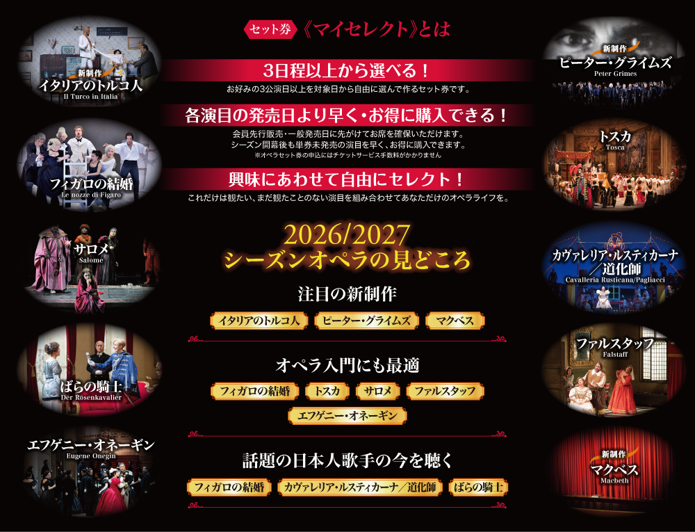 (対象演目:『フィガロの結婚』『トスカ』『カヴァレリア・ルスティカーナ/道化師』『マクベス』)