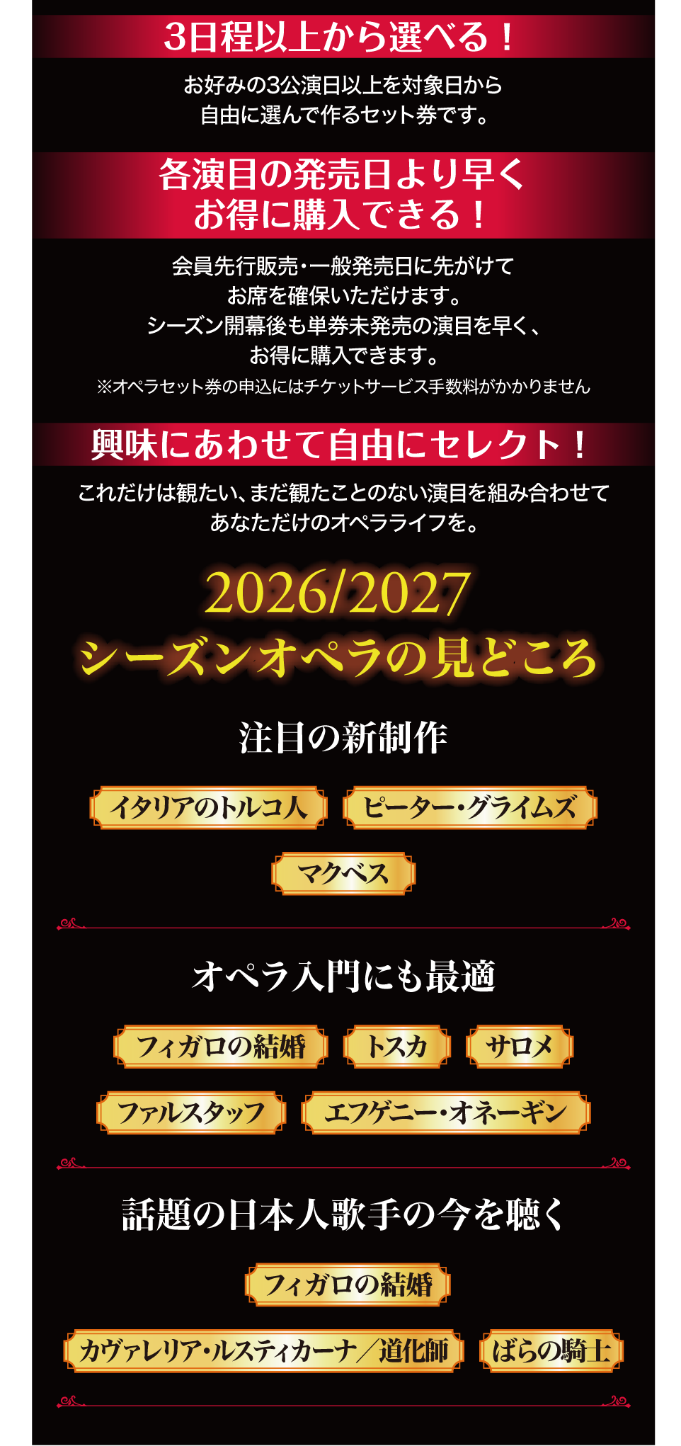 対象日の中から3公演日以上を組み合わせて、あなただけのオペライヤーをお楽しみください。